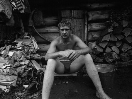 Слева: Виктор Ахломов. Илья в бане. Из серии «Баня». 1972 Справа: Владимир Соколаев. Банька по-черному. 1975