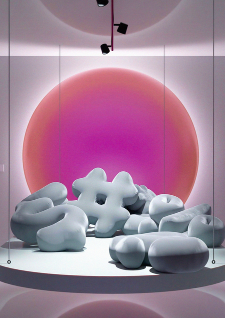 Современное арт пространство, состоящее из нескольких залов, наполненных предметами экспериментального дизайна интерьера