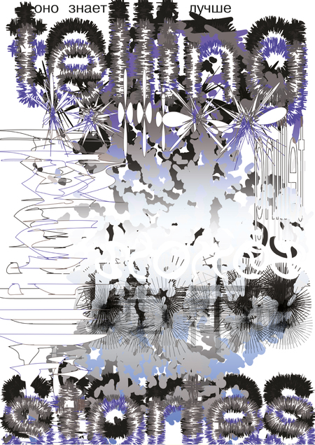 Инфофонд и инфоповот отражают важную специфику информационного пространства. В плакате основным визуальным наполнением стали многочисленные эффекты иллюстратора, которые накладываются друг на друга, точно так же, как и данные наслаиваются друг на друга, распадаются и совмещаются.
