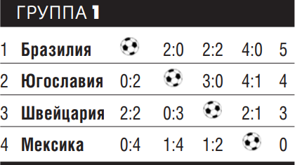 Матч открытия Бразилия — Мексика на «Маракане» едва не сорвался: судейская бригада из Англии застряла в дикой пробке и опоздала к началу игры. Их выручила затянувшаяся церемония открытия турнира — арбитры прибыли на стадион во время приветственной речи президента Бразилии. Появление команд встретили залпами из 21 артиллерийского орудия, пятью тысячами выпущенных из клеток голубей и ворохом разбросанных с самолетов листовок. Мексиканцы были настолько потрясены этим пышным приемом, что оказали очень слабое сопротивление хозяевам. В действительности, мало кто мог выдержать натиск одной из лучших на тот момент тройки нападения: Адемир — Жаир — Зизиньо. Первый официальный гол в истории легендарной «Мараканы» провел Адемир. Он же забил и последний мяч в игре. День спустя в Белу-Оризонти дебютировали соперники: Югославия уверенно обыграла Швейцарию со счетом 3:0. Перед матчем второго тура против Швейцарии в Сан-Паулу бразильские болельщики ожидали продолжения праздника, однако итог поединка оказался иным. Тренер Флавио Коста выставил на поле троих представителей Сан-Паулу, не игравших в первом матче. Справиться с послевоенной модификацией швейцарского «засова» они не смогли.