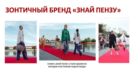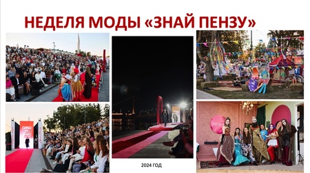 - Неделя моды «Знай Пензу» В мероприятии за 2023 приняли участие около 3000 человек, когда как в 2024 году это число выросло до 13000, такая популярности «Знай Пензу» совокупность участия предпринимателей из разных сфер работы и их коллаборации при создании стендов на неделе моды. Такое событие способствует развитию креативных индустрий.