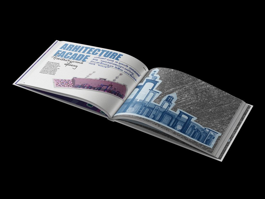 За основу обложки выбрана часть принта, созданного ранее для графического фасада. Принт обработан для эффекта аппликации и следования моей концепции.