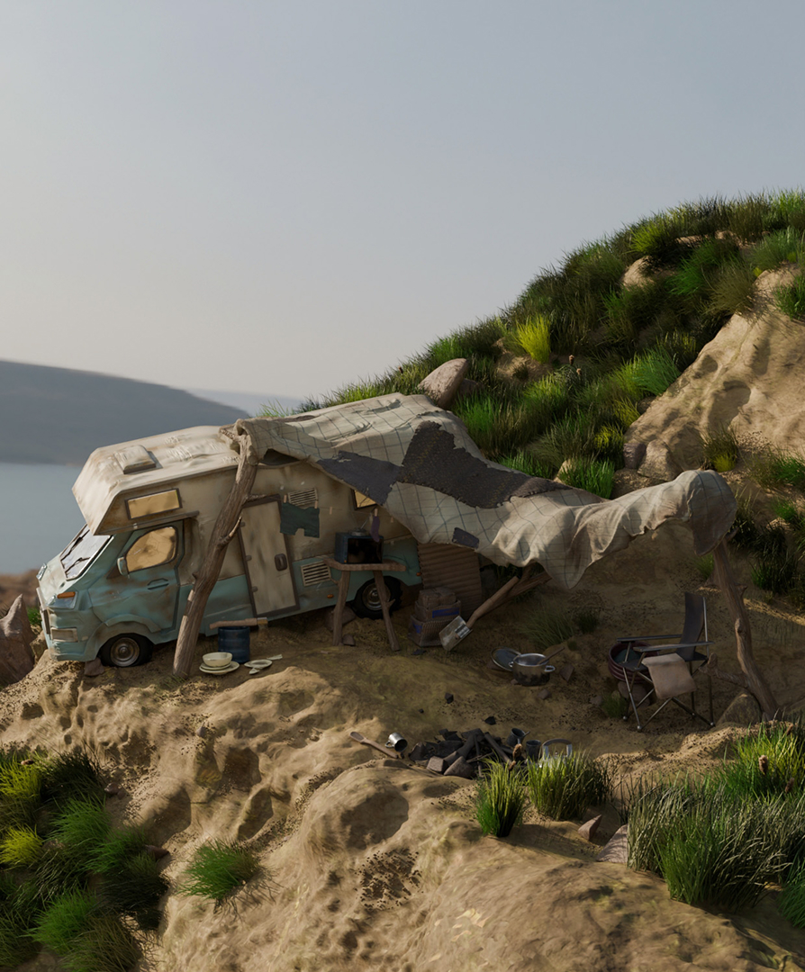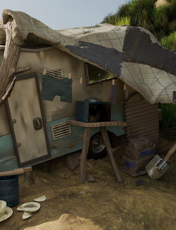 Мне хотелось передать ощущение заброшенности и захламленности, будто люди резко, без предупреждения, покинули свой временное место жительства. От этого пространство приобретает загадочную и немного жуткую атмосферу.