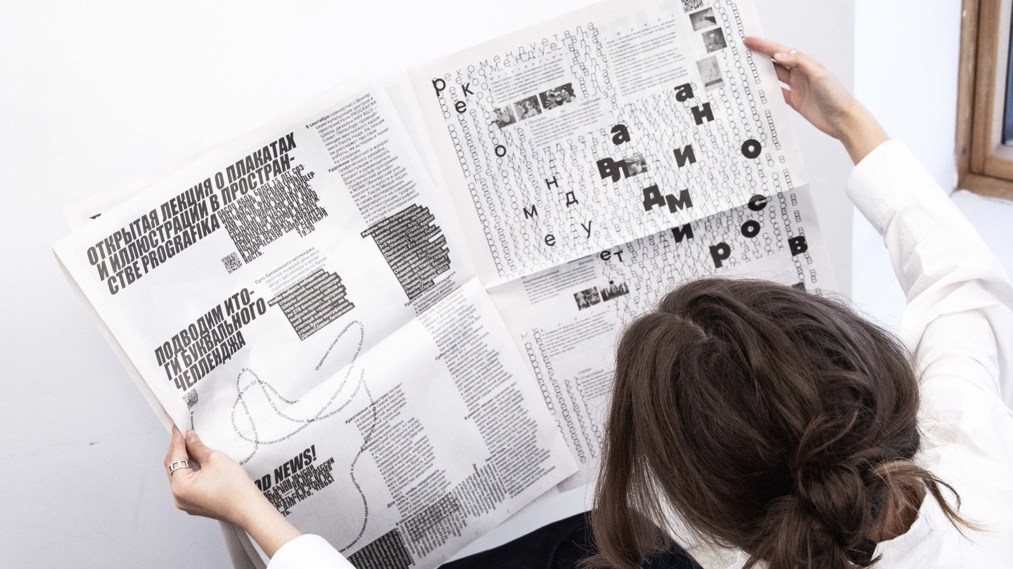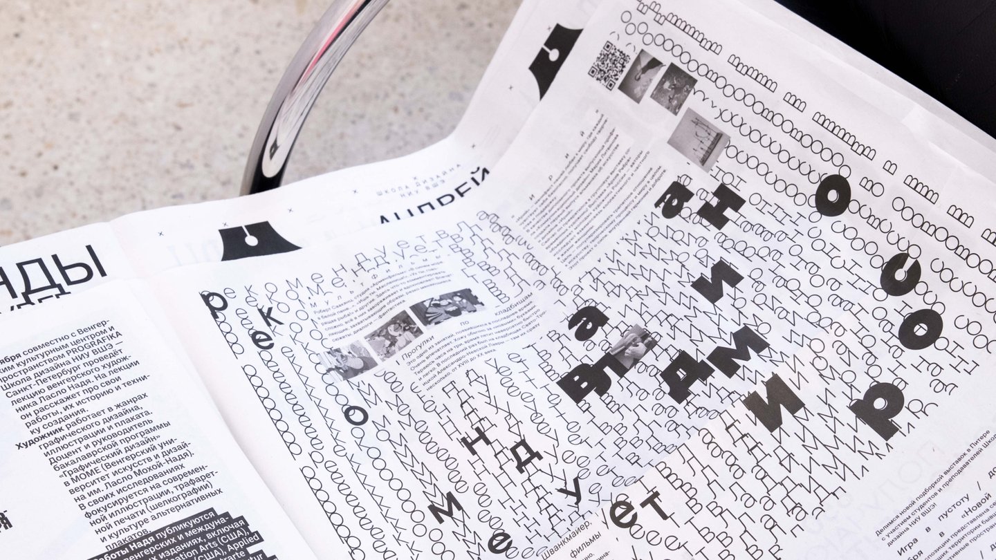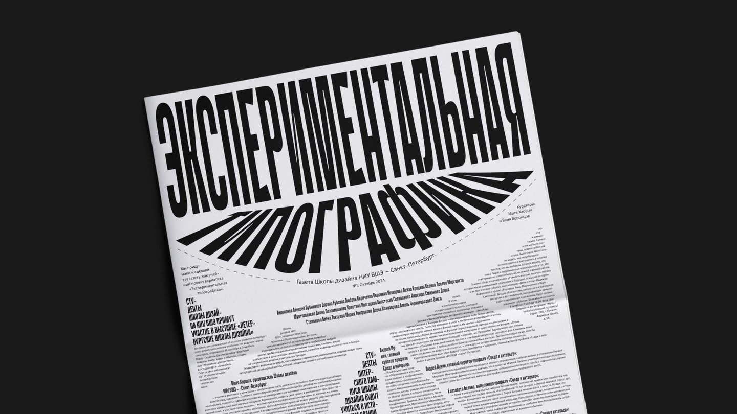 В этом модуле мы создали комплекс типографических клаузур: портрет, натюрморт, пейзаж, выполненных в техниках аппликации и цифрового коллажа. Помимо этого, мы пробовали себя в экспериментальном леттеринге, а также выполнили дизайн газетных полос формата 420×578 мм по текстам новостей Школы дизайна.