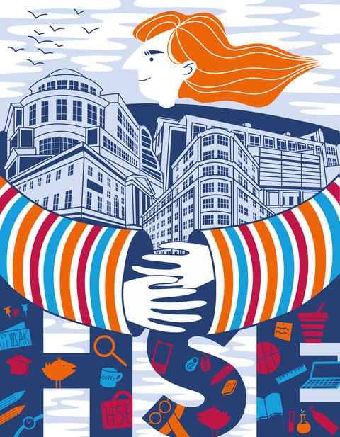 Проект по созданию иллюстрации по брифу для Высшей Школы Экономики, а также перенос ее на носители — плакат, платок и тарель. В иллюстрации мне хотелось показать сплоченность и дружность ВШЭ, а также неотъемлемую часть учебного процесса в виде вещей, которые каждый ученик таскает с собой на пары
