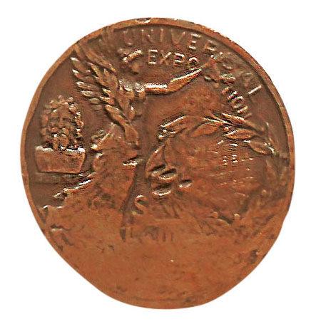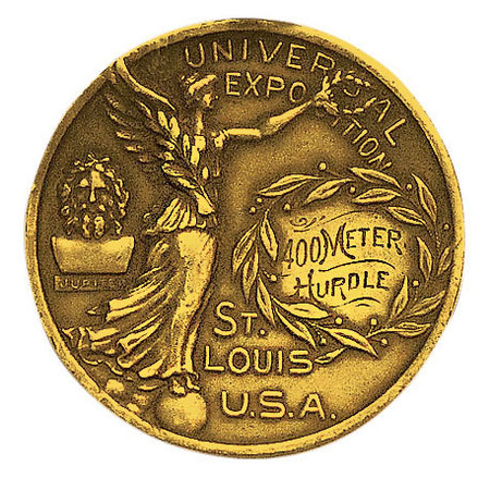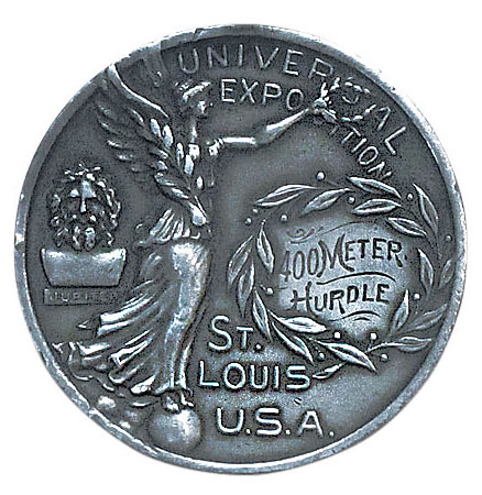 Реверс: слева стоящая на земном шаре богиня Ника с пальмовой ветвью как символом мира и венком победителя. Слева от нее бюст Зевса работы Фидия; справа лавровый венок, в него монтировался шильдик с названием вида спорта. Вверху текст: UNIVERSAL EXPOSITION (Всемирная выставка); внизу название города и страны, где проводились Игры: St. Louis U.S.A. (Сент-Луис США).