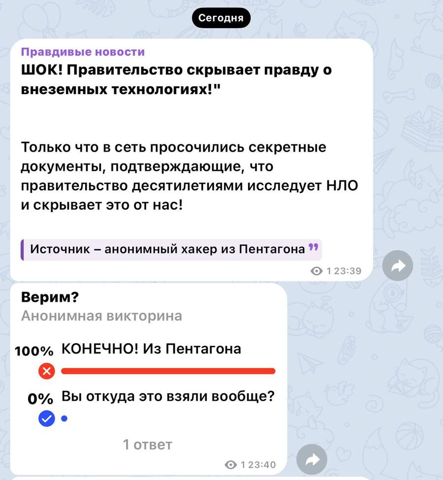 Создание Telegram-канала, пародийная новостная лента, где сплетаются достоверные факты, вопиющие фейки, непроверенные слухи и откровенная абсурдная выдумка. Цель канала — не дезинформировать, а обучать. Читателя предлагается погрузиться в хаос информационного поля, научиться отличать правду от лжи, анализировать источники и развивать критическое мышление. Каждый пост — это тренировка для ума, заставляющая задумываться над природой информации и её влиянием. Этот эксперимент — неотъемлемая часть промо-кампании выставки современного искусства, посвященной постправде. Канал станет интерактивной площадкой, где пользователи смогут делиться своими наблюдениями, обсуждать публикации и проверять информацию.