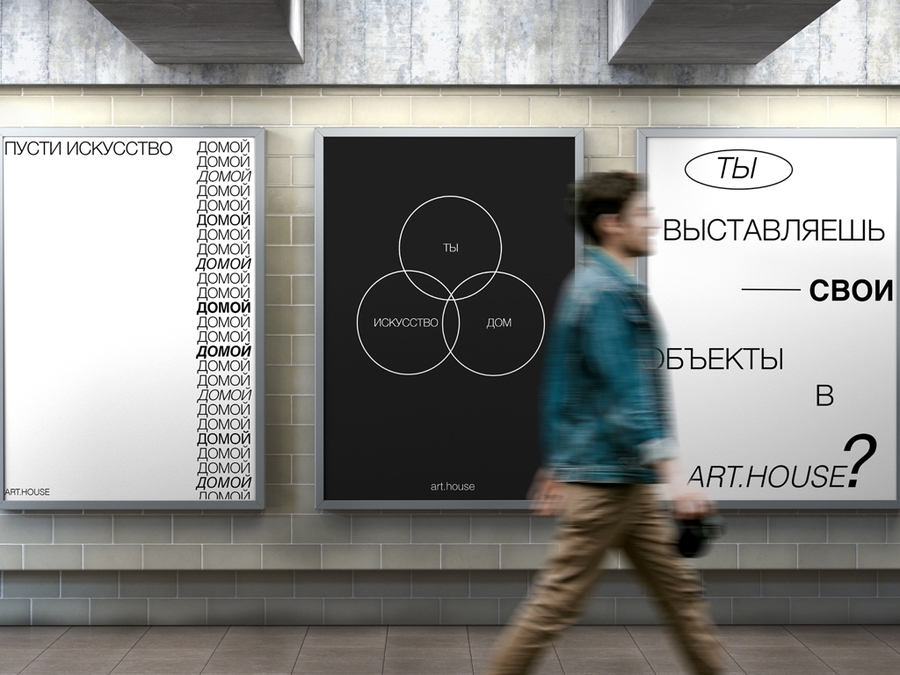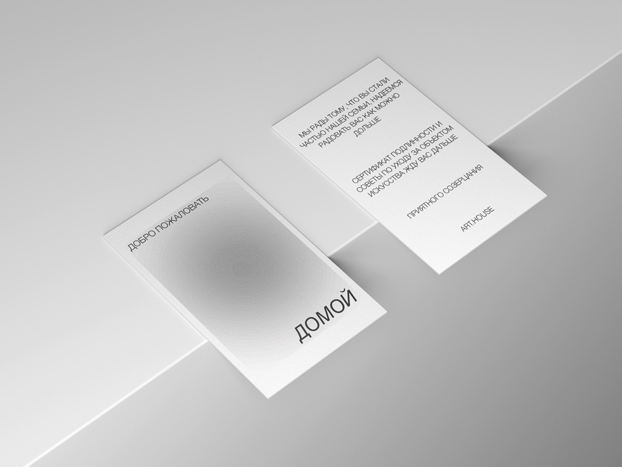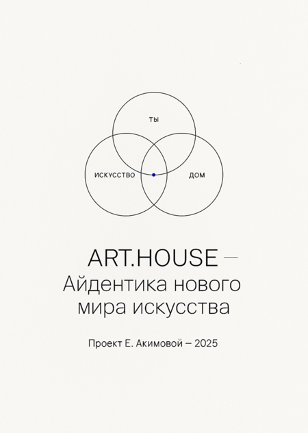 «Можно представить ART.HOUSE как тихую, бесконечную галерею, где стены не ограничивают, а растворяются в свете, а пространство не давит, а дышит. Это место, где искусство не висит на стене — оно существует в воздухе, в тишине, в геометрии света и тени. Всё здесь выверено до миллиметра, но ничего не кажется холодным — потому что каждая линия, каждый угол, каждый оттенок созданы не для порядка, а для вдохновения. Бренд не кричит — он шепчет: в микротексте, в отражении, в едва уловимом изгибе. Его символ — три круга, пересекающихся в одной точке, — не логотип, а закон этого мира: здесь всегда встречаются ты, искусство и дом. И эта встреча — не событие, а состояние. Акцент — одна точка ультрамарина — не цвет, а эмоция, не пятно, а пульс. Стиль — не дизайн, а атмосфера: будто ты вошёл в первый зал выставки, которую никто ещё не видел, и понял — здесь всё будет по-другому. Здесь искусство не доставляют — оно приходит. Не покупают — находят. Не вешают — впускают. И всё это — не реклама, не сервис, не платформа. Это — ART.HOUSE. Место, где прекрасное становится частью жизни, не спрашивая разрешения»