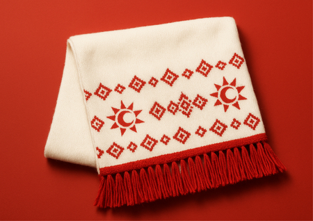 Почему он? Вдохновением послужила белорусская вышиванка, где на белом полотне красными нитками крестиком вышиваются замысловатые, но достаточно простые узоры, каждый из которых имеет свою расшифровку.