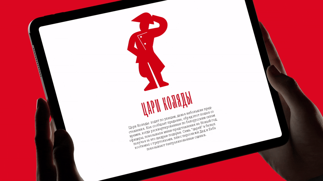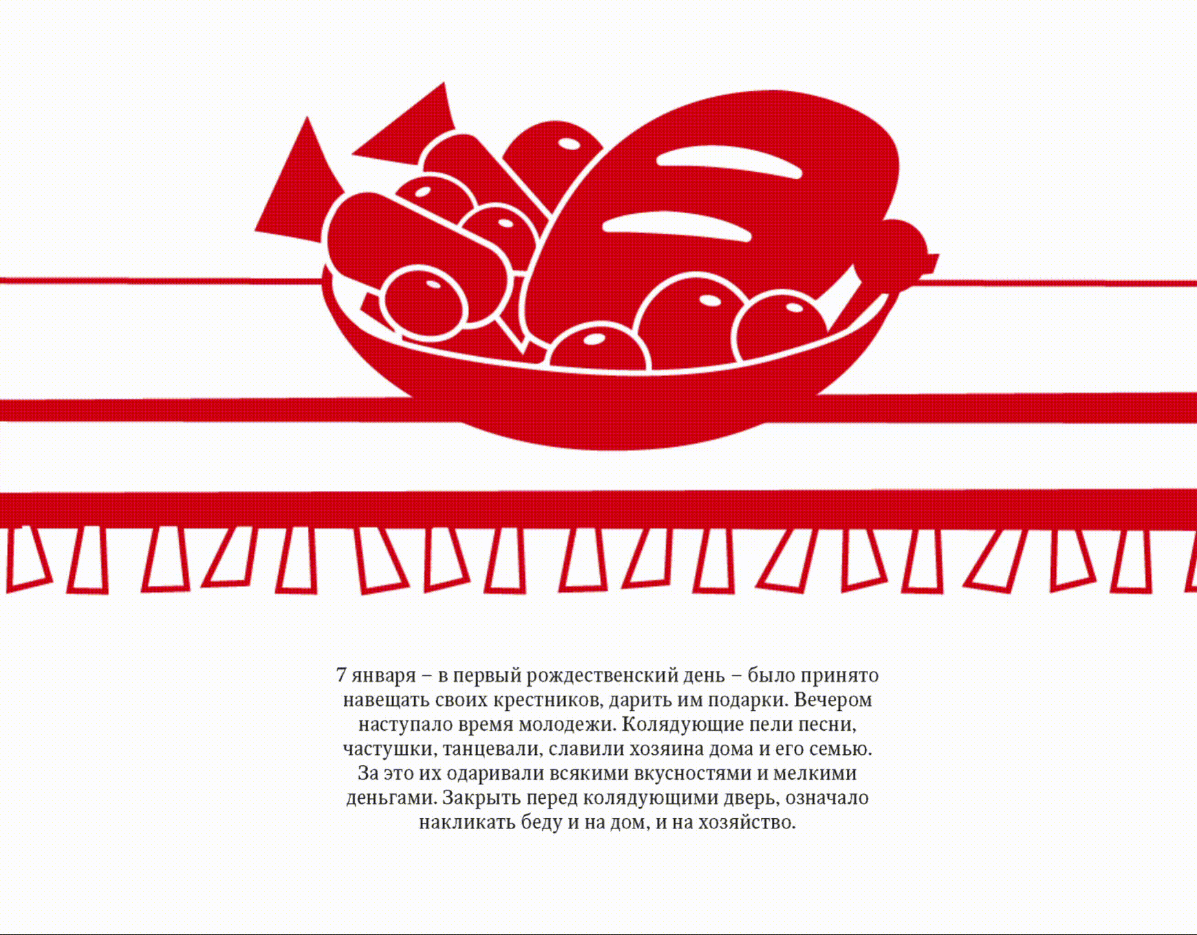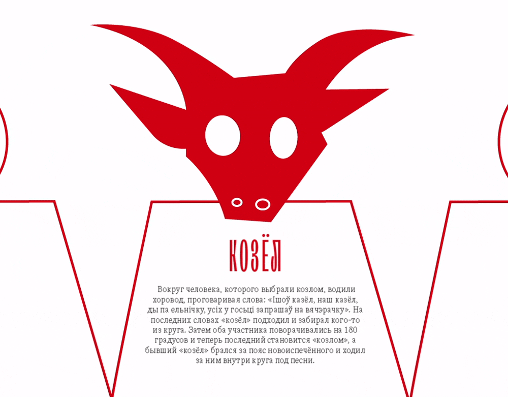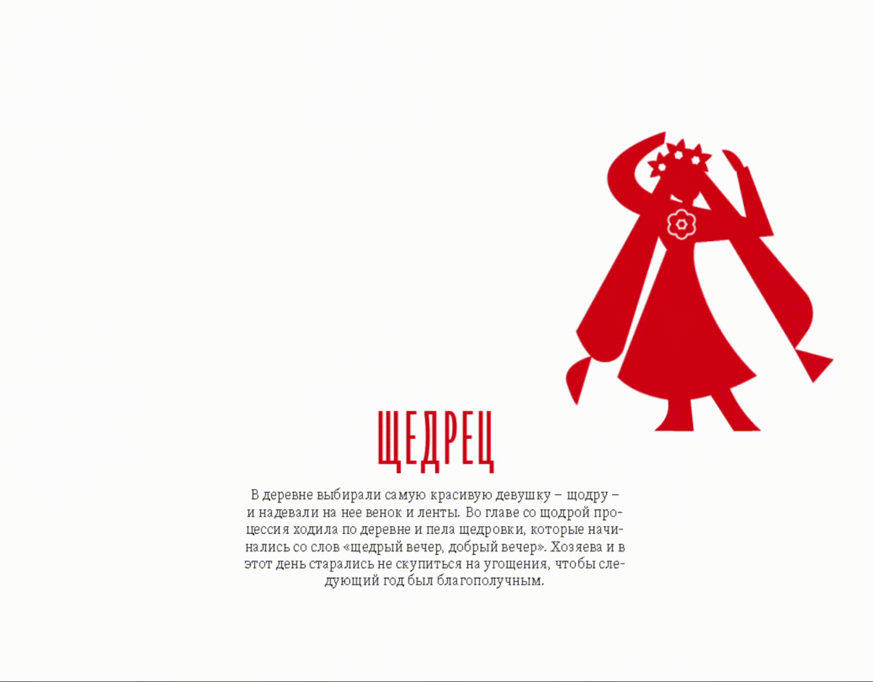 Визуально мне хотелось дать такой культурно насыщенной теме современную трактовку, поэтому вместо того, чтобы идти путём детализированных иллюстраций, был выбран силуэтный, чем-то напоминающий пиктограммы стиль. А также главный акцентный цвет — красный.
