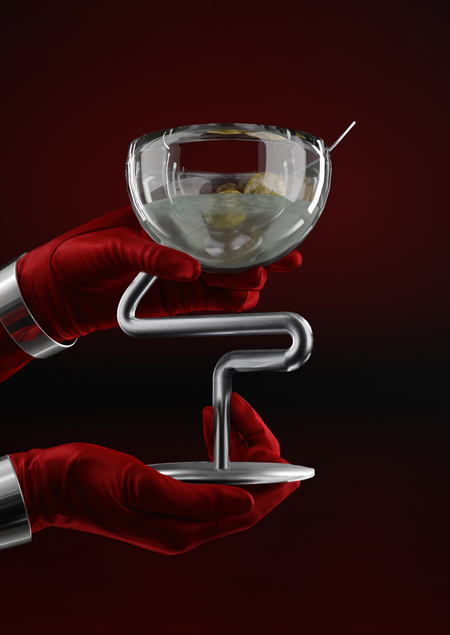 На основе шрифта с плаката международной ассоциации барменов был создан бокал с металлической ножкой с магнитом.