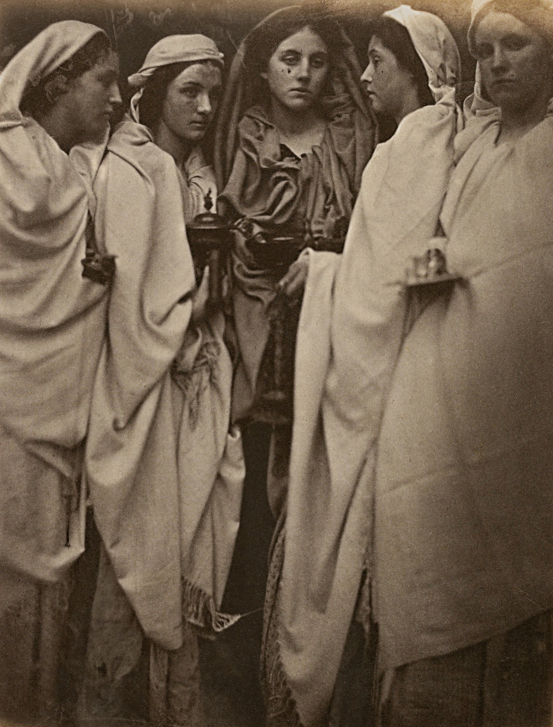 Снимок Камерон иллюстрирует притчу о десяти девственницах: мудрых и глупых. На этом изображении пять мудрых или праведных девушек. Они ведут добродетельную жизнь и готовы войти в рай. Их одежды аккуратны, а взгляды кротки, что соответствует традиционным правилам иконографии.