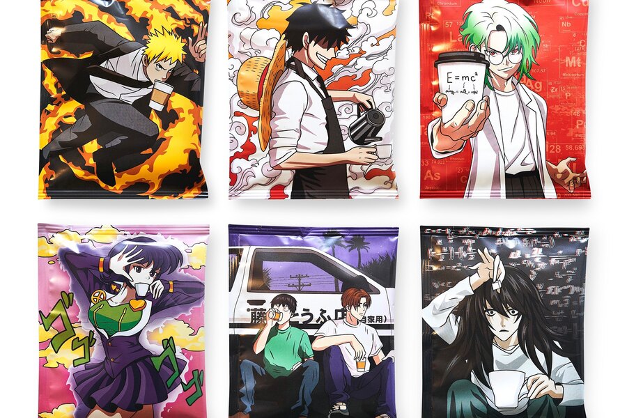 Московские обжарщики Camera Obscura Coffee перед Новым годом выпустили финальный тираж аниме-дрипов. На упаковках — иллюстрации Фа Минор по мотивам Naruto, One Piece, Dr. Stone, JoJo, Initial D и Death Note, внутри — кофе Уганда Мбале.