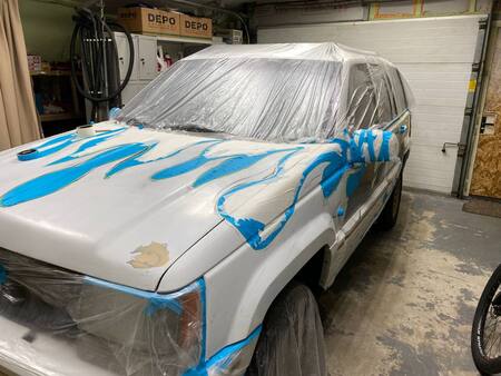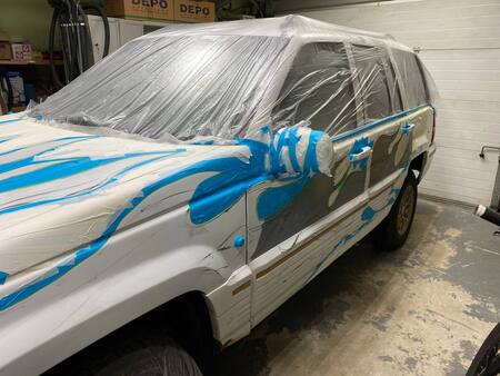 После этого оклеил рисунок контурной лентой и укрывочным скотчем