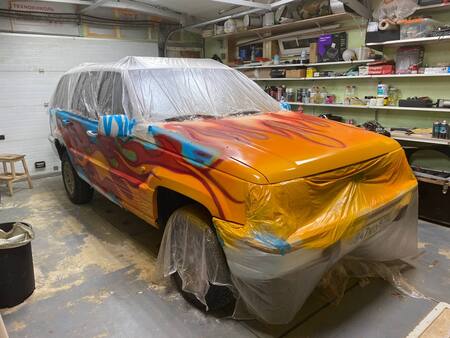 Выбрал покраску в классические флеймы, так как этот стиль подходит данному авто по характеру: низкий и басистый звук двигателя V8, рубленый дизайн, настоящий америкаский автомобиль прошлых лет. «They don’t make 'em like that anymore»