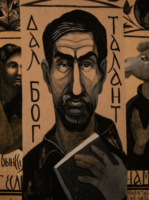Виталий Пацюков предложил взять большой формат и показать в выставочном пространстве «лес человеческих судеб». Так родилась серия из семи листов: «Матрона», «Дева», «Юродивый», «Троица», «Воин/Чудик», «Мадонна с петухом», «Антипод».