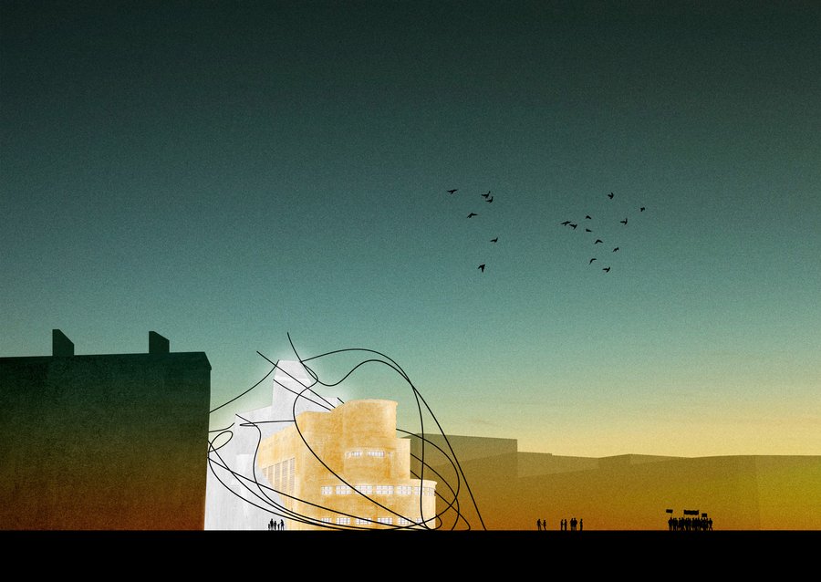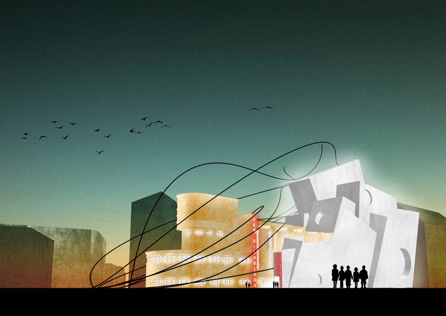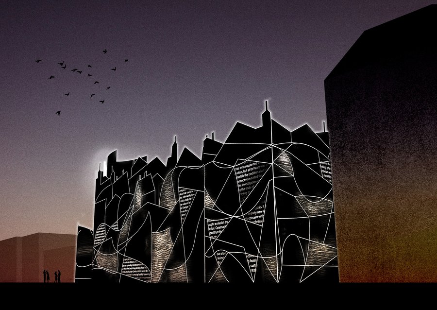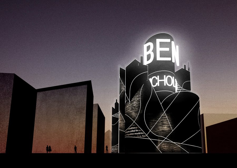 Графический фасад ночью