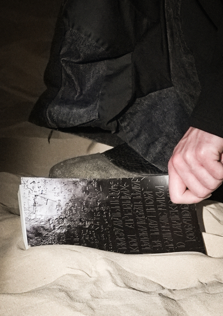 Визуальное исследования представляет собой сравнительный анализ ушедших эпох с фантазиями об еще не наставшем будущем. В силу символьного характера надписей и утраченных сведений культуры древнего мира, далекое прошлое нам также доподлинно неизвестно, как и предстоящее будущее, но кажется, что между этими константами гораздо больше общего, чем кажется на первый взгляд.