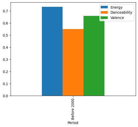 1. определение среднего уровня показателя energy по годам 2. сравнение музыкальных периодов по характеристикам