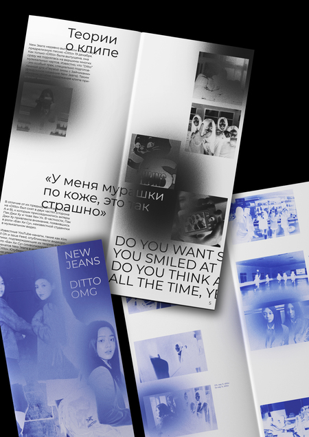 Тема проекта — корейская музыкальная группа Newjeans. Конкретно плакаты посвящены одной из их песен — «Ditto». В работе мне хотелось передать настроение клипа и песни в целом, а также мои личные ощущения от просмотра и прослушивания