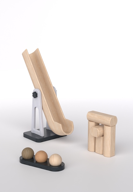 Запуск мячика путем скатывания по горке уравнивает силы взрослого и ребенка. Траектория полета регулируется наклоном горки, фиксирующегося при помощи зажимных ручек. Также дальность броска можно регулировать посредством использования шариков разной массы.