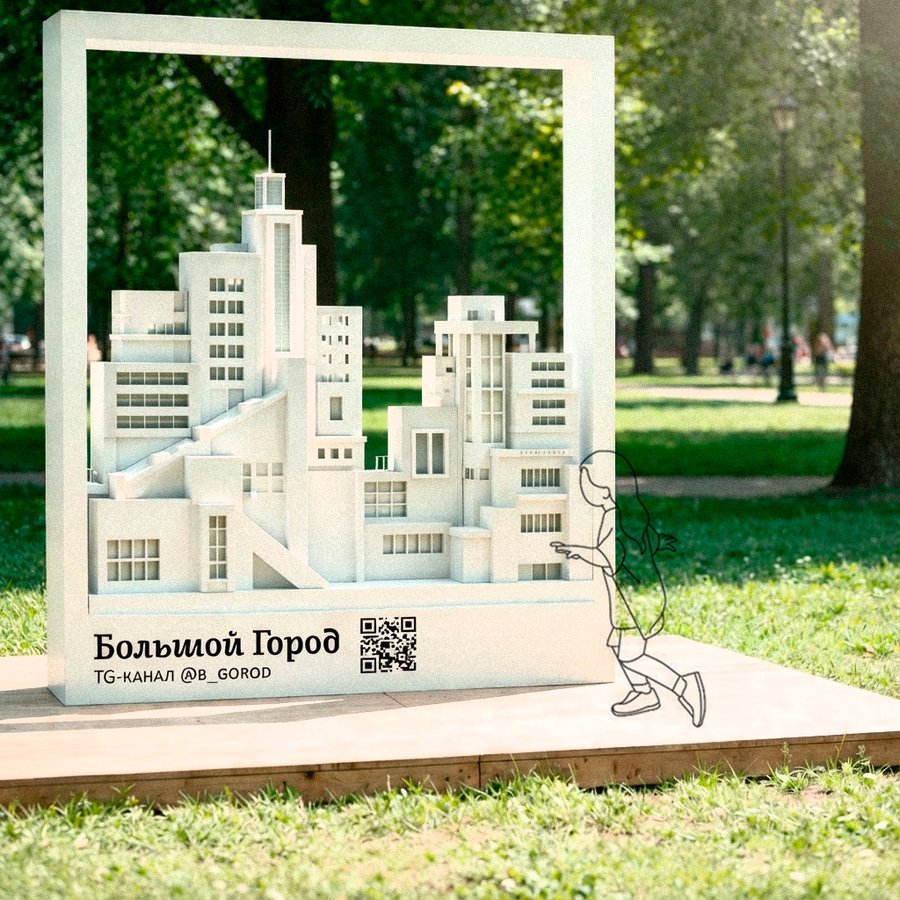 Проект представляет собой фотозону-фоторамку, которая превращает наследие революционной архитектуры в актуальный визуальный язык.