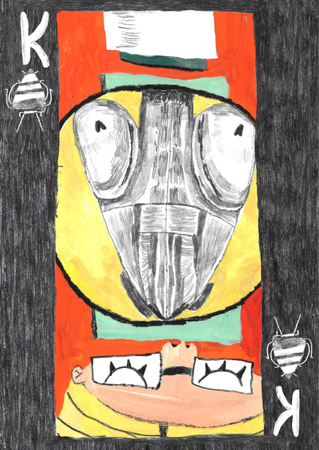 Валет: дети играют с букашками Дама: взрослые замечают присутствие жуков Король: ученые исследуют разные отряды насекомых Туз: история оставляет насекомых в веках