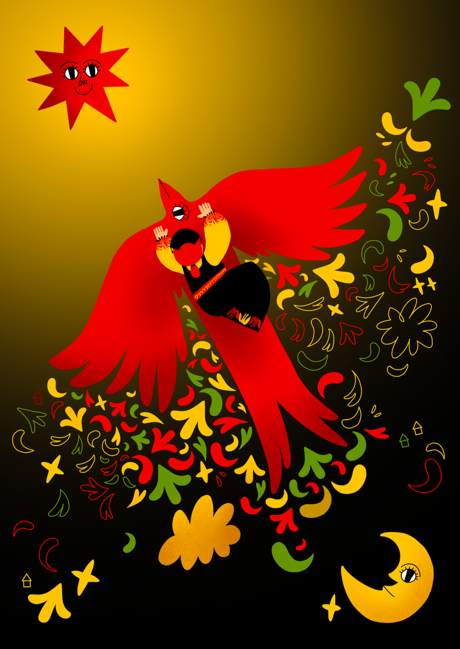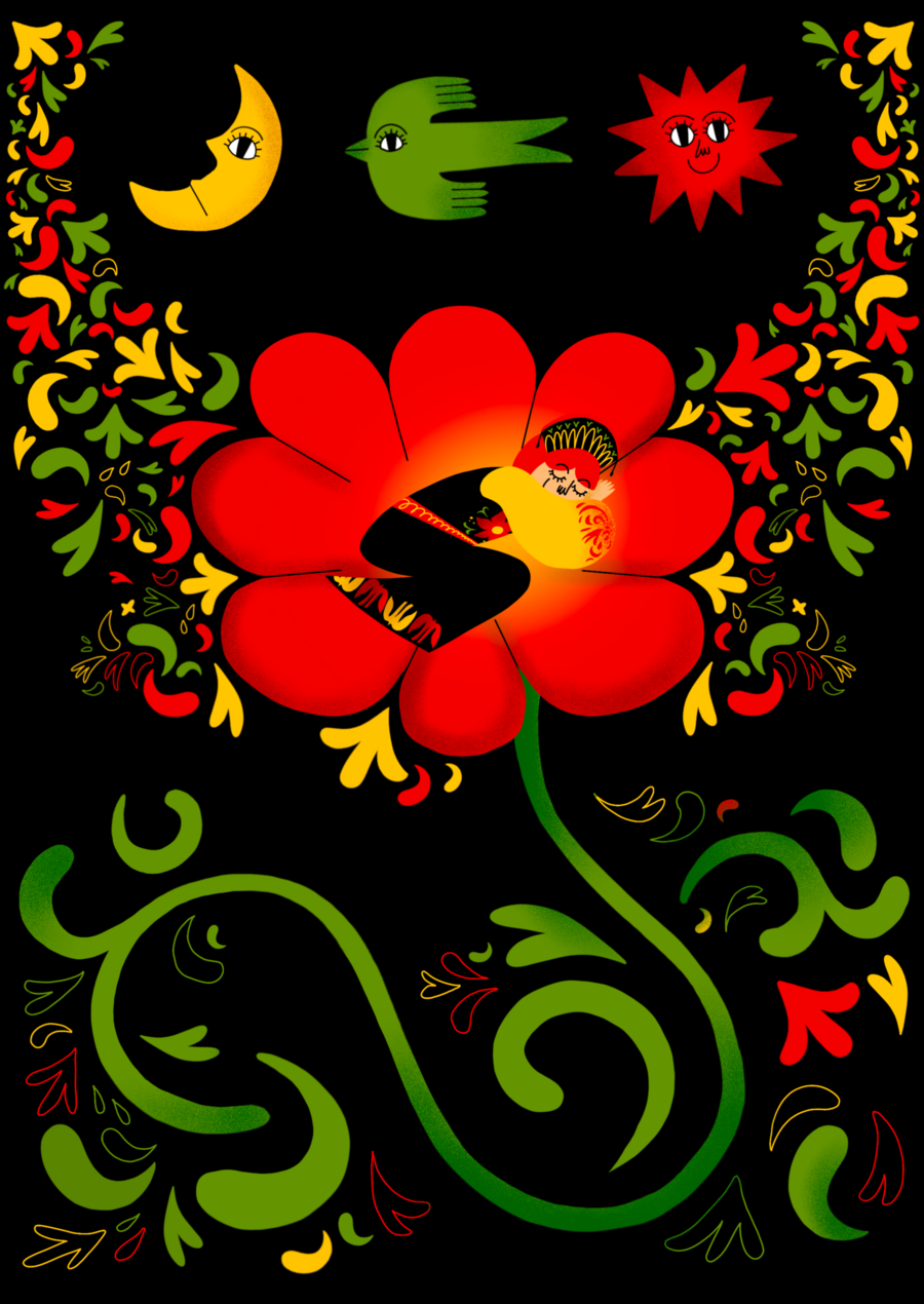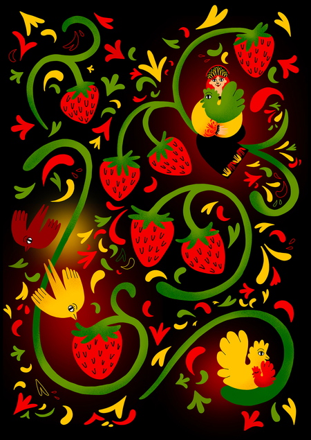 День и Ночь ругались между собой за главенство, поэтому земля родила принцессу по имени Хохлома, которая регулировала тьму и свет.