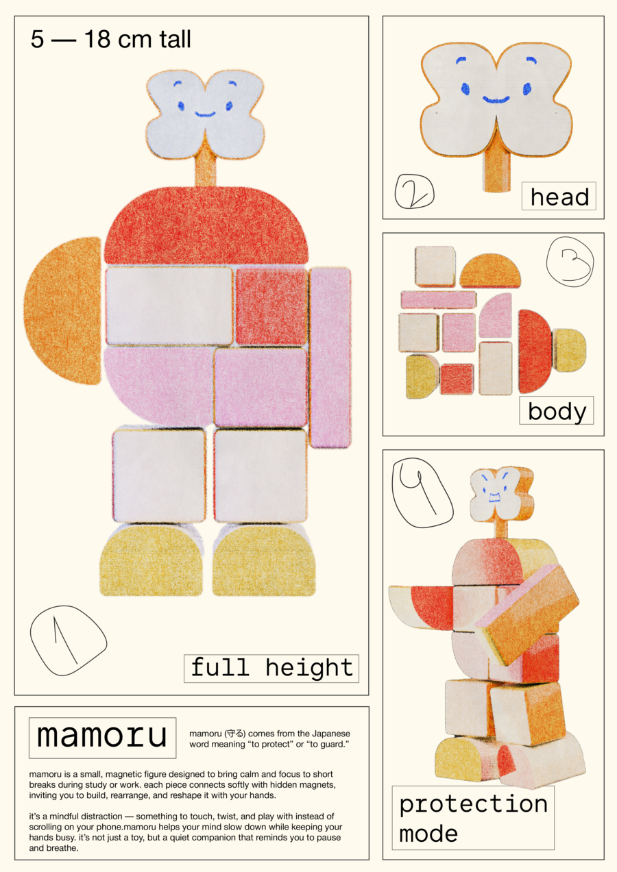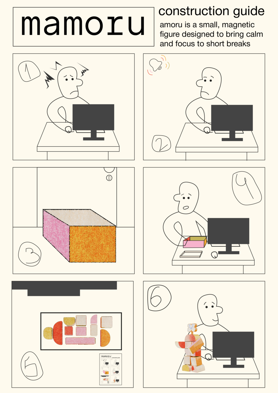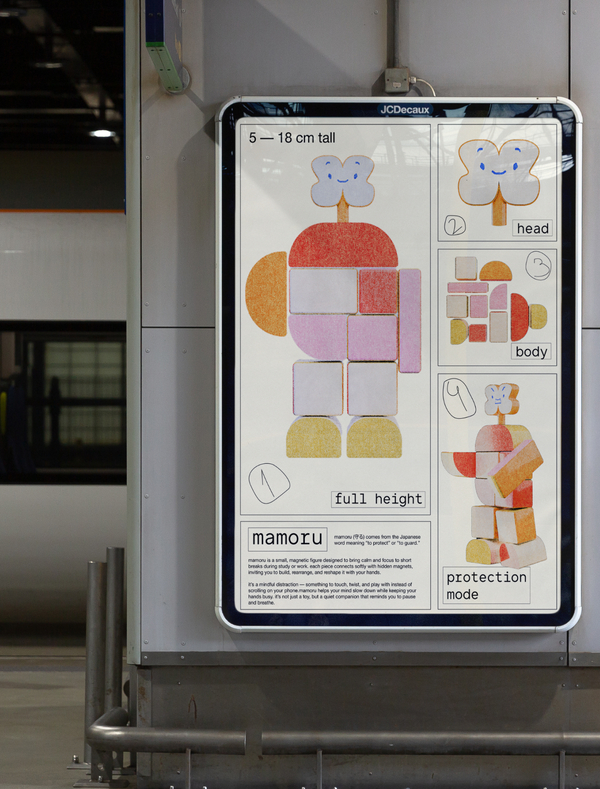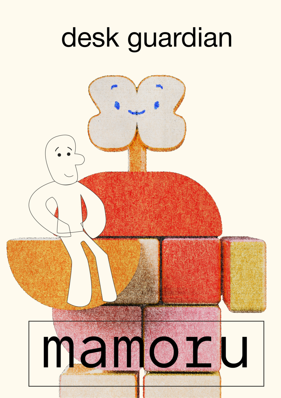 название фигурки «mamoru» происходит от японского 守る, что в переводе означает «оберегать» и защищать. в данной серии плакатов мамору выступает защитником и другом уставшего от работы человека, оберегая его от неприятных мыслей и занятий.