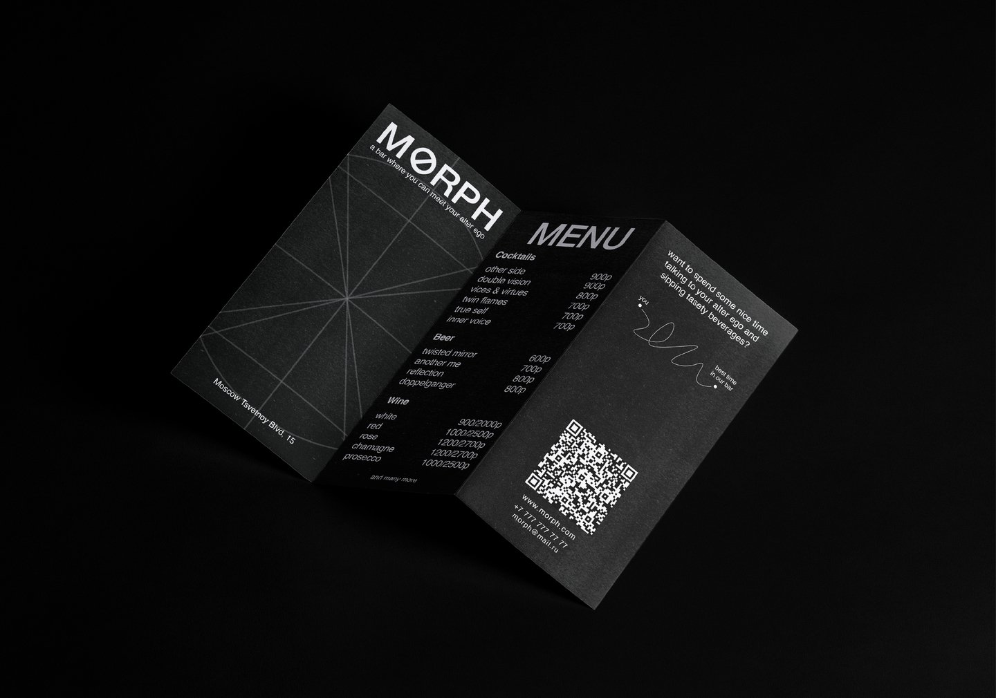 MORPH — бар, где каждый может выпустить внутренний мир наружу и, выпив вкусные напитки, пообщаться со своим альтер эго как с реальным человеком. Это место для тех, кто хочет заглянуть вглубь собственной личности, встретиться лицом к лицу с самыми сокровенными мыслями или просто побеседовать с альтернативной версией себя.