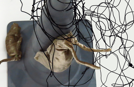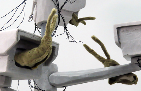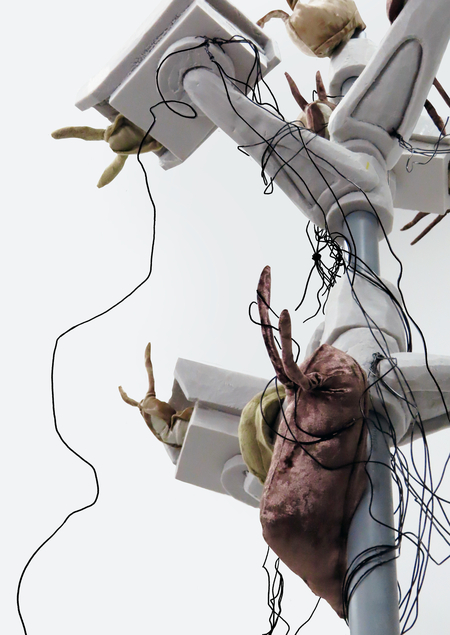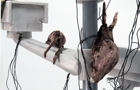 В этой скульптуре место человека занимают слизняки. «Бездомные улитки», без панциря и защиты. Их тела уязвимы, а присутствие разрушительно.