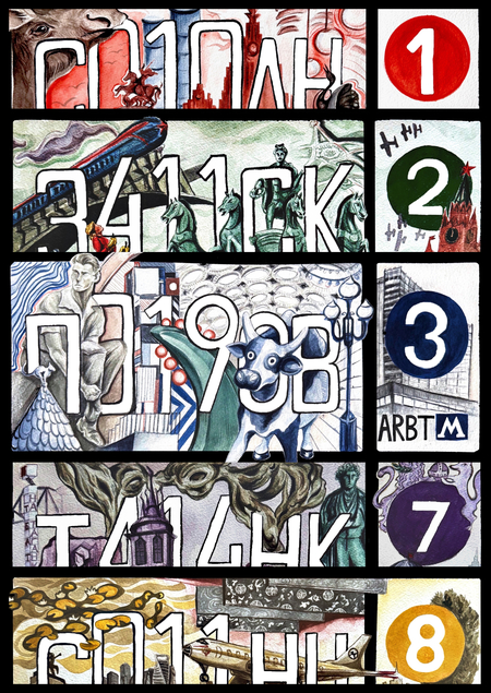 Метро — важная часть жизни москвичей. Ветки метро связывают мегаполис воедино, они проходят под районами, улицами и знаковыми местами города. Регистрационные знаки моей серии, посвящённые линиям метро, показывают как сами станции, так и то, что находится наверху. Название отсылает к поездам модели «Номерной» и одновременно к формату самих работ.