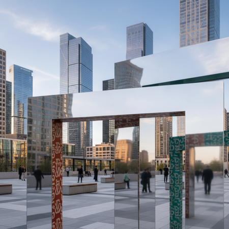 На внутренние грани арок я наношу элементы фирменного стиля и интегрированные QR-коды. Попадая в зеркальные плоскости, графика и коды многократно дублируются в отражениях. Это не только закольцовывает визуальную идею, но и позволяет зрителю мгновенно перейти в цифровое пространство газеты из любой точки внутри инсталляции.