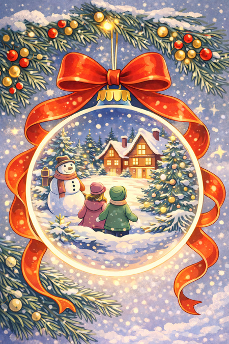 Зимний город в этих работах выглядит обжитым и дружелюбным. Дома стоят близко друг к другу, снеговики появляются как естественная часть пейзажа, а свет в окнах превращает холодное пространство в тёплое и живое. Новый год ощущается как момент, когда весь окружающий мир будто замирает в ожидании.