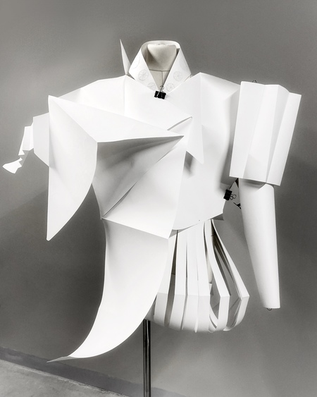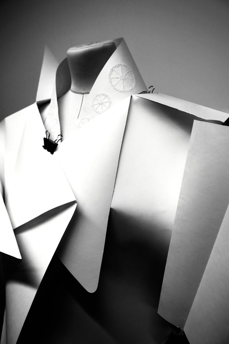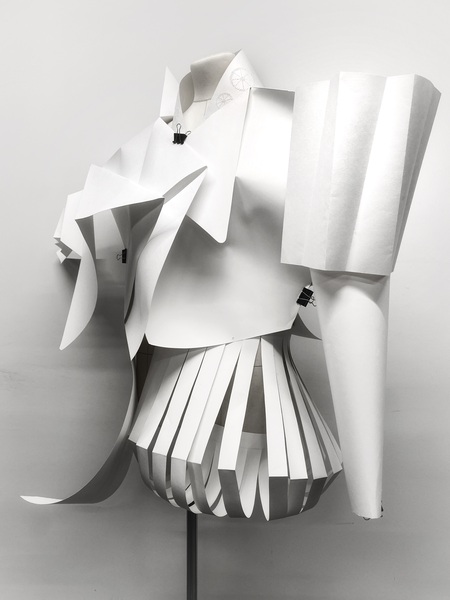 Новой скорости нужно новое тело в макете костюма мы стремились передать мобильность, чувство контроля, доступ к новым пространствам и воплощение революции, которые получили женщины, благодаря появлению велосипедного костюма. И сегодня, в эпоху цифровой скорости и стирания границ, каждое технологическое преобразование требует изменения телесного — новой формы, осанки, костюма.