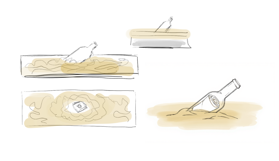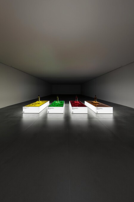 Платформы состоят из 4 основных элементов, представляют из себя островки с внешним свечением, заполненные акрилом, имитирующим масло. Небольшое возвышение по центру платформы, на котором располагается сам продукт