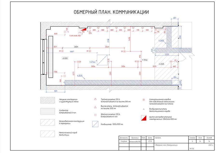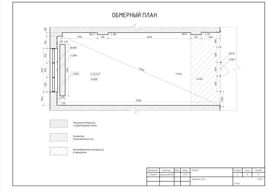 Альбом включает в себя практические задания, обмерные планы аудитории в Канатном цехе с водонапорной башней завода «Красный гвоздильщик», который является корпусом НИУ ВШЭ и из плана возводимых перегородок для проекта учебного кластера.