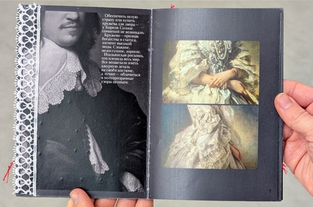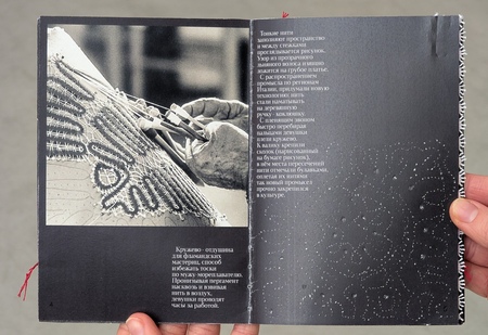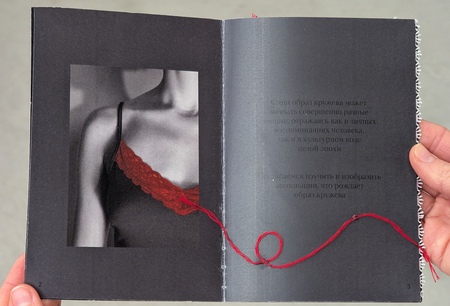 В зине как визуальном исследовании изображены ассоциации, что рождает образ кружева при помощи текста, иллюстраций и фактур
