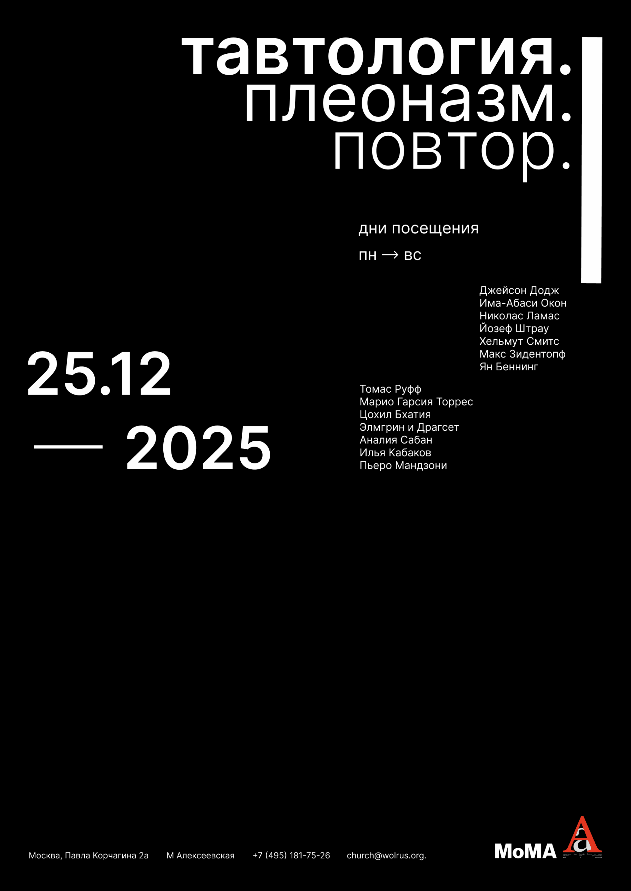 Выставка «Тавтология. Плеоназм. Повтор.» предлагает зрителю сформулировать собственную позицию через взаимодействие с визуализацией мыслей художников, а также ответить на главный вопрос: все, что мы видим, это одно и то же или же каждый предмет имеет свою историю и обладает уникальностью?