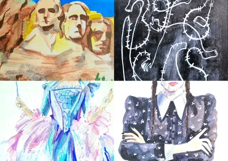 В первую группу я объединила те работы, в которых я сравниваю данных художников, дизайнеров и модельеров с различными персонажами и кадрами из сериалов и фильмов.
