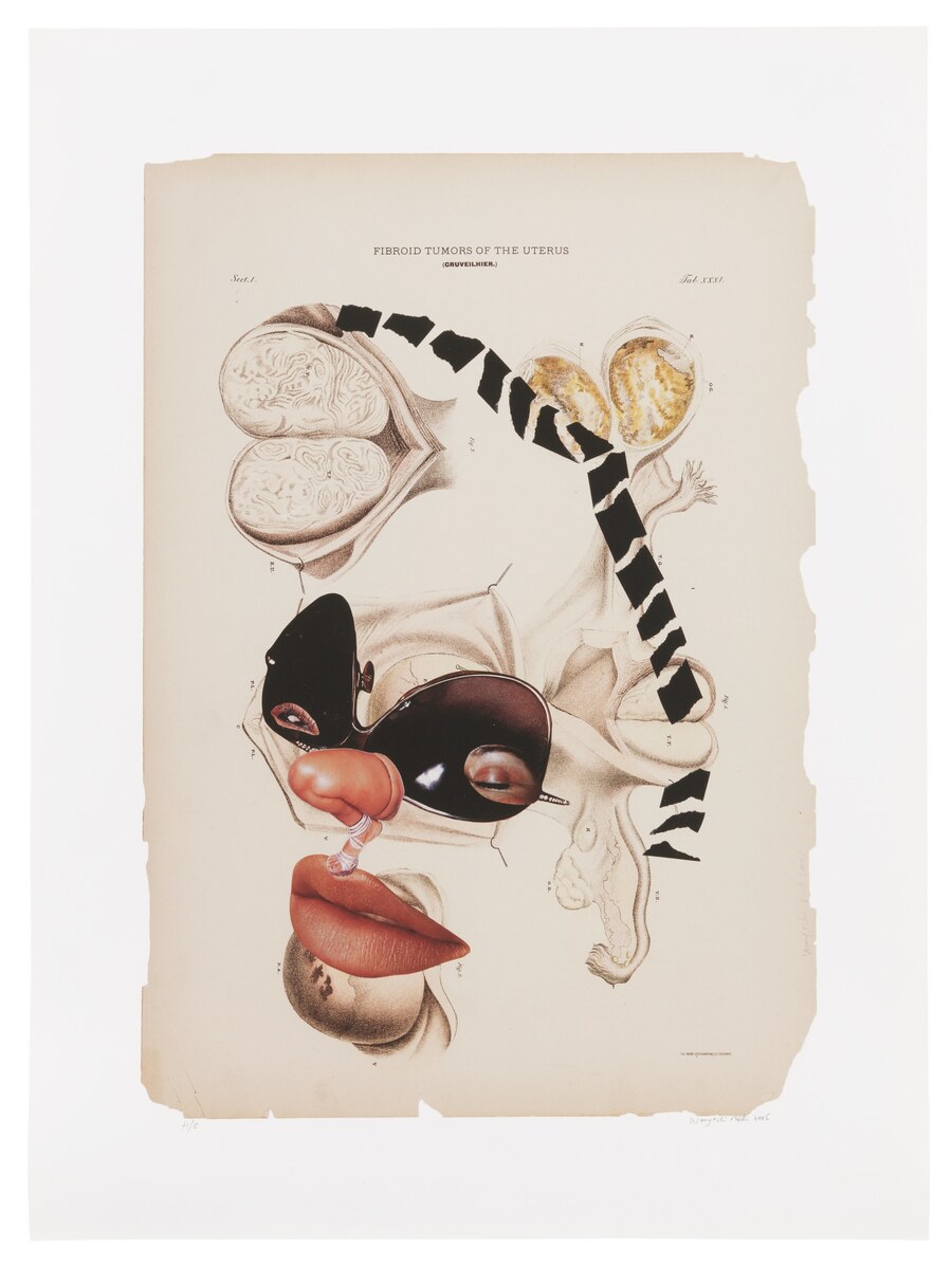 Вангечи Муту, «Гистология различных классов опухолей матки» https://nmwa.org/blog/nmwa-exhibitions/positive-fragmentation-wangechi-mutu-on-the-black-body/, https://www.phillips.com/detail/wangechi-mutu/215462, https://emuseum.vassar.edu/objects/22719/histology-of-the-different-classes-of-uterine-tumors (дата обращения: 06.12.2025)