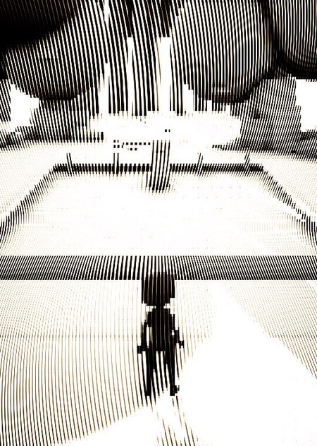 Круговая и многоэтажная структура арены заставляет игрока постоянно прыгать между этажами, никогда не задерживаясь, ведь если он остановиться, то будет убит.