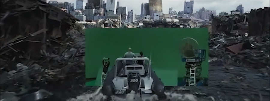Рассматривая изображения, мы можем заметить схожий подход, использовавшийся в фильме «2012» — камера трекинг. Однако масштабы работы над деталями просто поражают. Огромное количество 3D моделек, хаотично раскиданных по затопленной территории создают ощущение не просто царящего беспорядка, а настоящего апокалипсиса. Если рассматривать документальные кадры городов, которые снесло настоящим цунами, можно заметить удивительно сходство с показанным в фильме.
