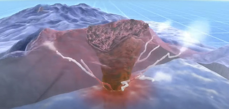 Если говорить о настоящем извержении вулкана, то оно обычно происходит прямо в зоне сейсмической активности. Тектонические плиты сталкиваются, и одна уходит под другую, расплавляясь и создавая магму, которая, в свою очередь ищет путь наружу. Грунтовые воды под вулканом нагреваются, испаряются и создают огромное давление. Когда давление достигает точки пика, происходит извержение.