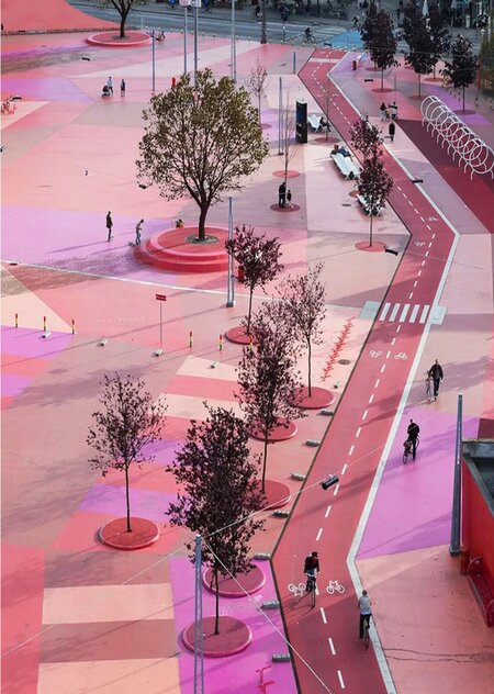 В проекте создания бульвара с велосипедными и беговыми дорожками в Дании участвовала достаточно большая группа художников. Авторы создали два велотрека, три разноцветные зоны (оранжевая, красная и розовая). Помимо занятий спортом населению предлагаются зоны отдыха.
