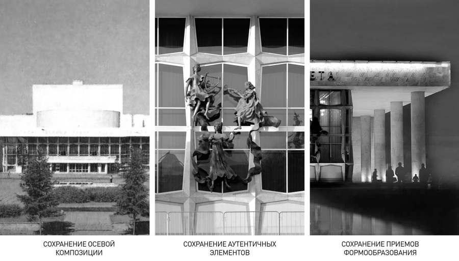 «Зеленый театр — объект культурного наследия федерального значения. Мы часто работаем с такого рода объектами и всегда стараемся максимально приблизится к оригинальному историческому облику. К примеру, стены фасада театра выкрашены в цветовой гамме, которая была 1954 года. Каждая капитель и гипсовая розетка идентичны тем, что были здесь в прошлом», — Ольга Ершова, директор Департамента строительства, реставрации и благоустройства объектов городской инфраструктуры ГК «ЕКС».