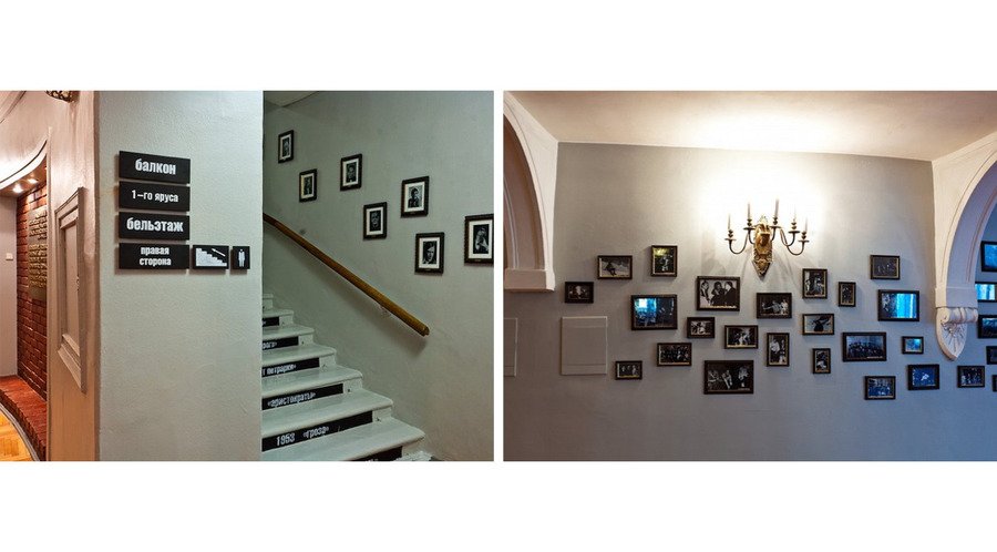 В театре предусмотрена новая навигация в виде разных табличек, в стиле меловых рисунков. Работали над ниме художники Алексей Трегубов и Анна Румянцева. Мел, который говорит о текущей динамике театра, совершенно парадоксально сочетается с помпезным, а заодно и уютным для зала интерьером. Его придумал народный художник Российской Федерации Сергей Бархин, выкрасив стены в красный помпейский разбеленный цвет, портал и колонны в серо-зеленый цвет.