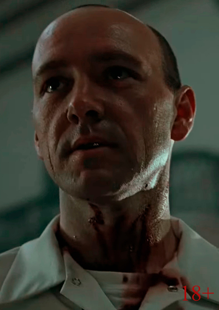 По визуальному наполнению данная сцена напоминает первую, здесь также использовано приглушенное освещение и оформление пространства играет большую роль. Можно обратить отдельное внимание на огромное количество ароматизаторов для воздуха, скорее всего они использовались убийцей, чтобы ослабить запах гниющего живьем тела. Грим также играет одну из ключевых ролей, он дает зрителю представление о том, в каком состоянии находится человек на экране.