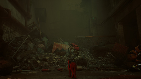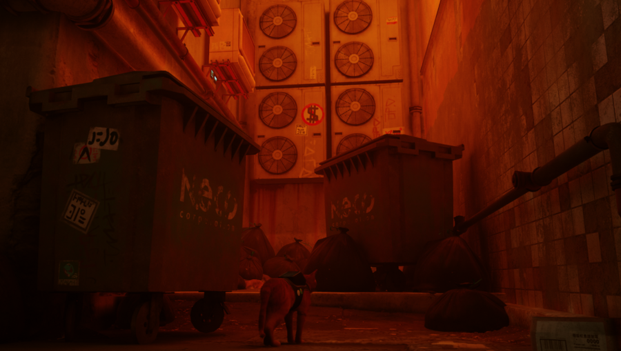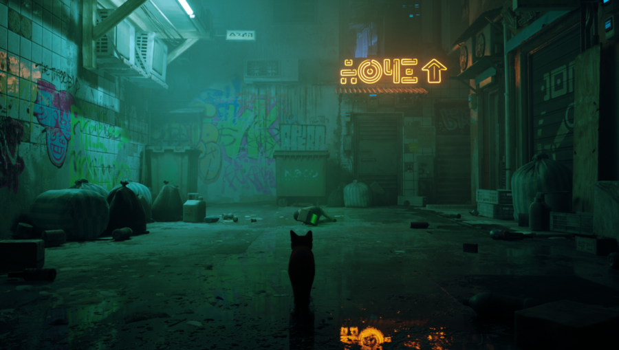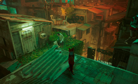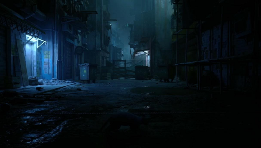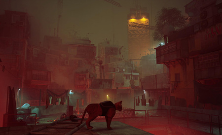 Stray, BlueTwelve Studios, 2022, взгляд на городскую среду со стороны, более обобщено от города