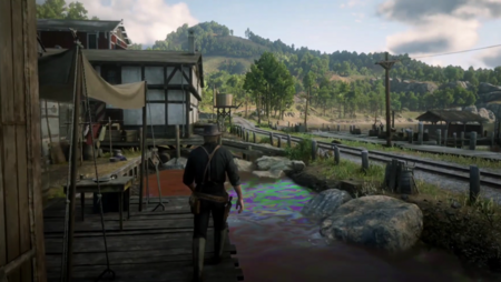 Red Dead Redemption 2, Rockstar Games, 2018, лужа токсичных отходов в Аннесберге и выход к озеру